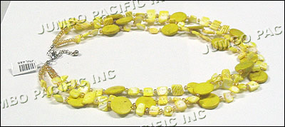 Necklace 18" 3 rows in whiterose dyed yellow alt. W/ 3mm glass