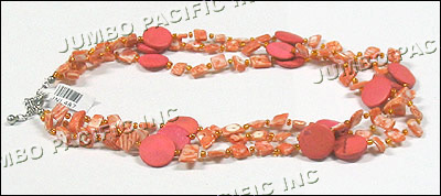 Necklace 16" 3 rows in whiterose dyed orange alt. W/ 3mm glass